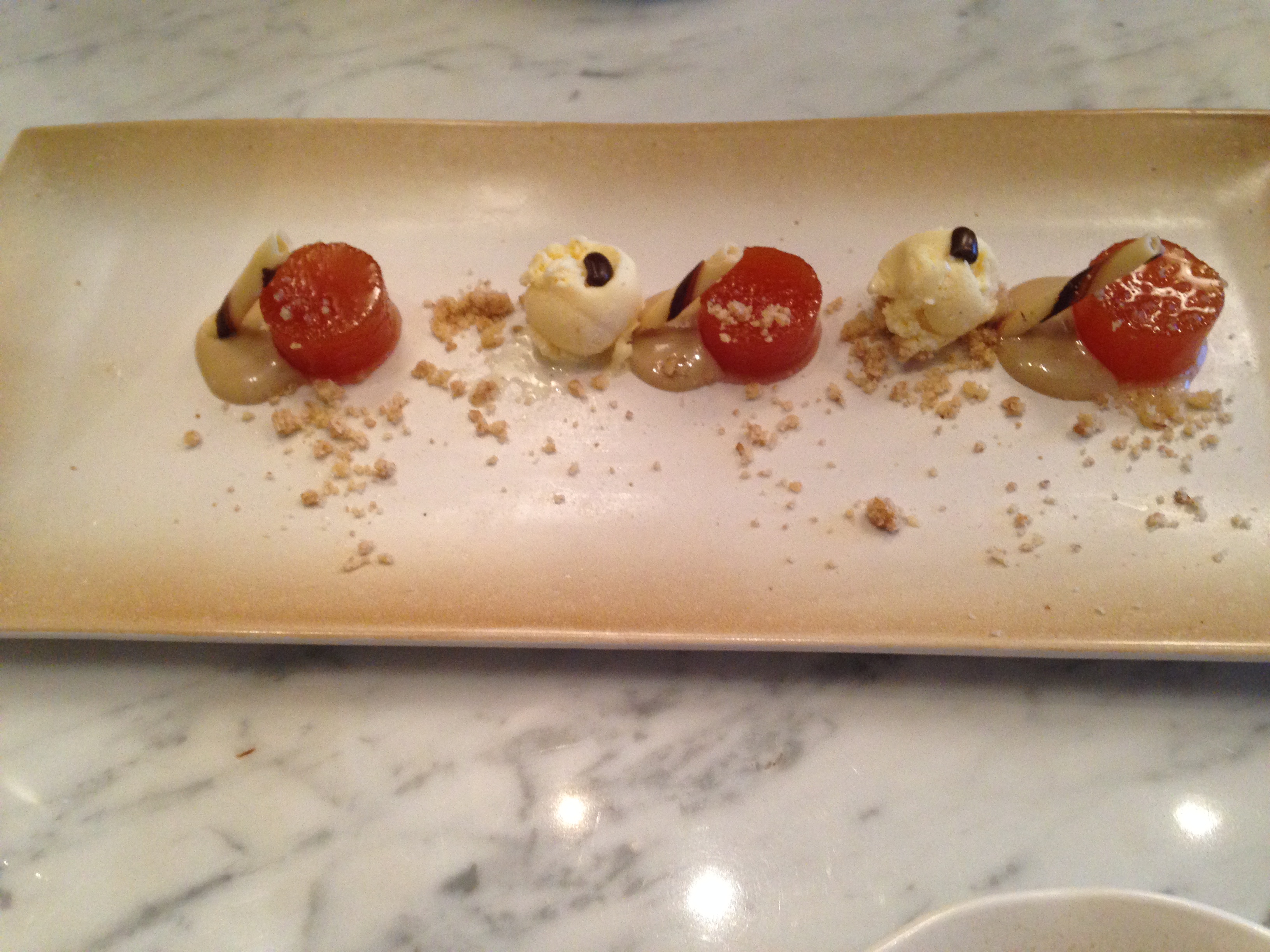 Tatlı olarak da Sweet Pumpkin dedikleri ve bizim okuyunca normal kabak tatlısı sandığımız ama sonrasında kabak şekeri tatlısı ile karşılaştığımız bir seçim yapmış olduk. Kebapçıda görmeye alışık olduğumuzdan tatlı servisimiz yapıldığında biraz karmaşık duygulara kapılmadık değil. Sunumuna çok özen gösterilmişse de belki de eleştiri olabilecek tek noktası tatlı porsiyonunun küçüklüğü idi, belki de çok lezzetli olduğu için biz öyle hissettik:) Bir de yasemin çayını poşet çay olarak servis ettiklerini öğrendiğimizde ya da şaşırdığımızda demeliyim; demleme yeşil çaydan yana tercihimizi kullandık.