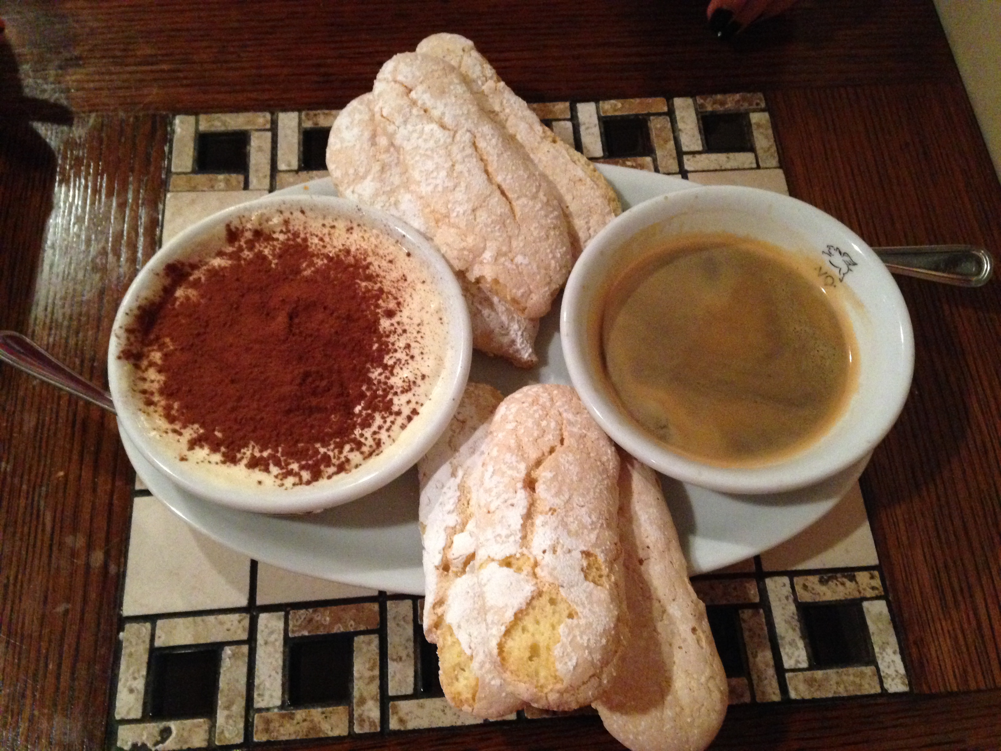 Gelelim ünlü tatlımıza. Aslında bildiğimiz görünümlü tiramisu’ları ile ünlü olsalar da biz iki kişilik olan ve görüntüsüyle bizi cezbeden Venedik usulü Tiramisu’yu tercih ettik. Oval bir servis tabağının bir tarafında kahve, bir tarafında krema ve kendi tatlınızı kendiniz yapın diye yanlarına eklenmiş 6 adet kedi dili bisküviden oluşuyor. Bisküvilerinizi önce kahveyle ıslatıp tabağınıza alıyorsunuz. Sonra üzerine kremadan sürüp afiyetle yiyorsunuz. Gerçekten atraksiyonu kadar lezzeti ile de çekici bir tatlı deneyimi idi.