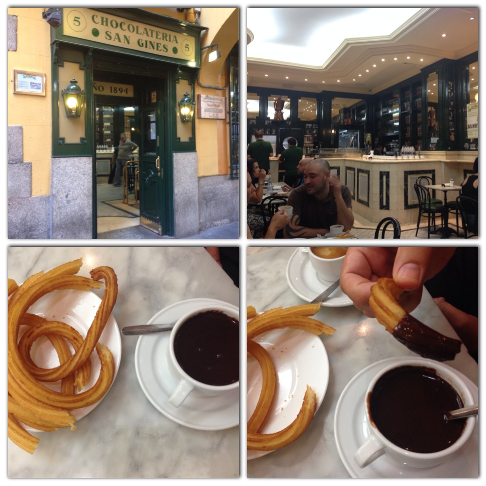 İspanya denilince akla gelen sadece bir değil birden fazla  yeme-içme unsuru var. Ancak Madrid’e gidene kadar varlığından haberdar olmadığım ve #nosugar (şekersiz) hayatımı nadiren bozduğum anlardan biri Churros içindi. Bizim lokma’mızın şerbet yerine yağda kızartılmışı. Görüntü olarak ince uzun tulumba tatlısı şeklinde. Birlikte servis edilen eritilmiş çikolataya batırarak yemek gerekiyor. Sabah kahvaltısının olmazsa olmazlarından churros için en çok ziyaret edilen yer Chocolateria San Gines.